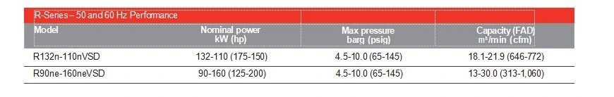Onze Next Generation R-Series-compressor is voorzien van een geheel nieuw, ultramodern compressorblok, waardoor dit de beste keuze is voor prestaties. Het nieuwe compressorblok verbetert de efficiëntie door verschillende verbeteringen, waaronder een geoptimaliseerd rotorprofiel om de bedrijfskosten te minimaliseren.