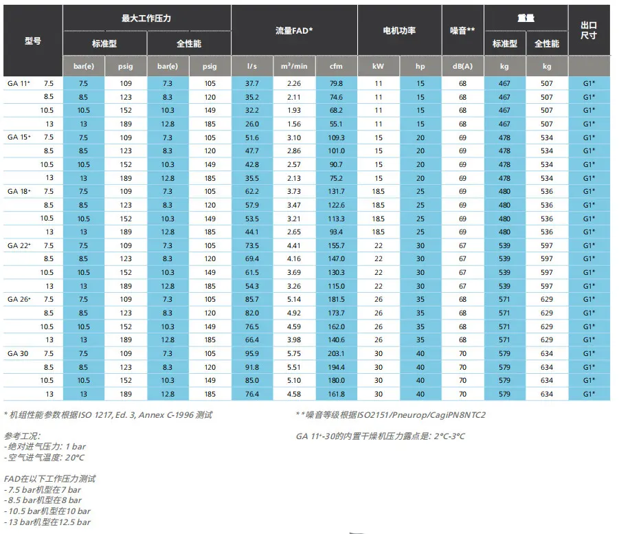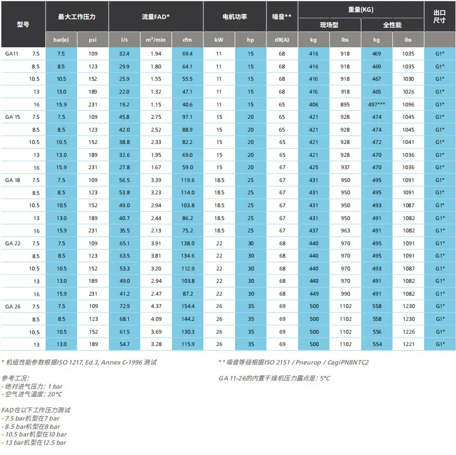 ·GA11-26 maakt gebruik van een nieuwe rotor en een IE2/IE3-motor met hoog rendement, die duurzaam en efficiënt is.